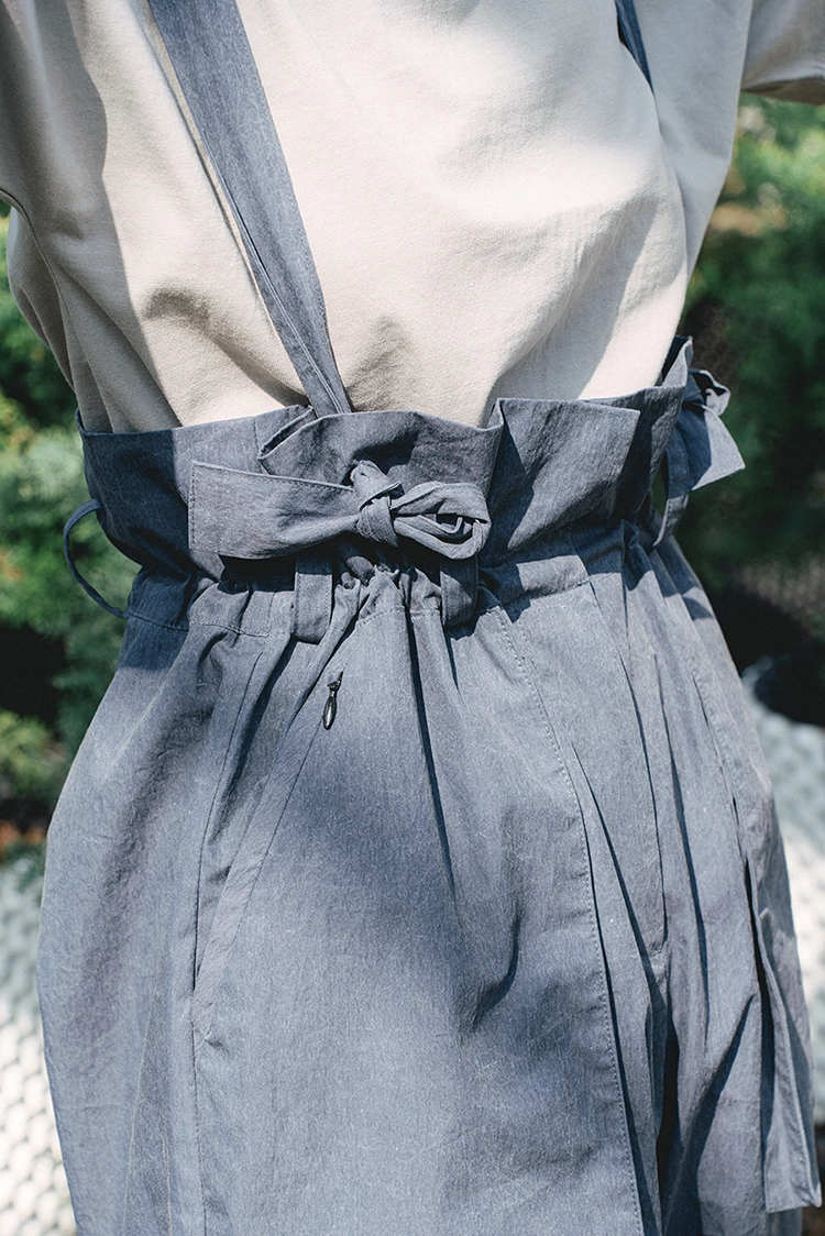 서스펜더 워크 팬츠는 기본적으로 넉넉한 사이즈의 바지를 내부 스트랩과 코드, 그리고 서스펜더 또는 벨트를 이용해 고정해서 입는다는 컨셉입니다.