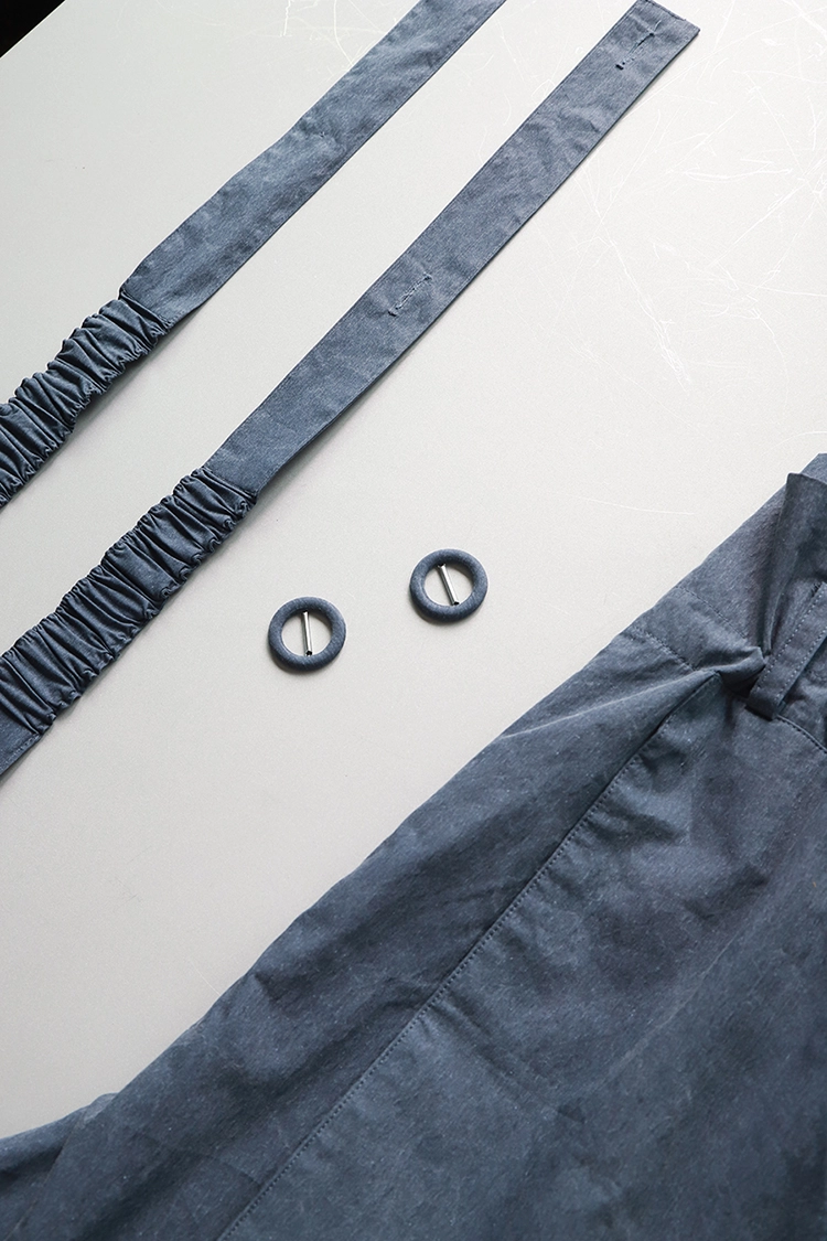 이번 워크 팬츠 재입고 분은 서스펜더 길이가 여유 있게 늘어났습니다. 또한 서스펜더 매듭을 고정해주는 버클을 함께 동봉하여 보내드립니다. 버클은 원단으로 감싸 일체감 있게 만들었습니다. (상세페이지 사진 참고)