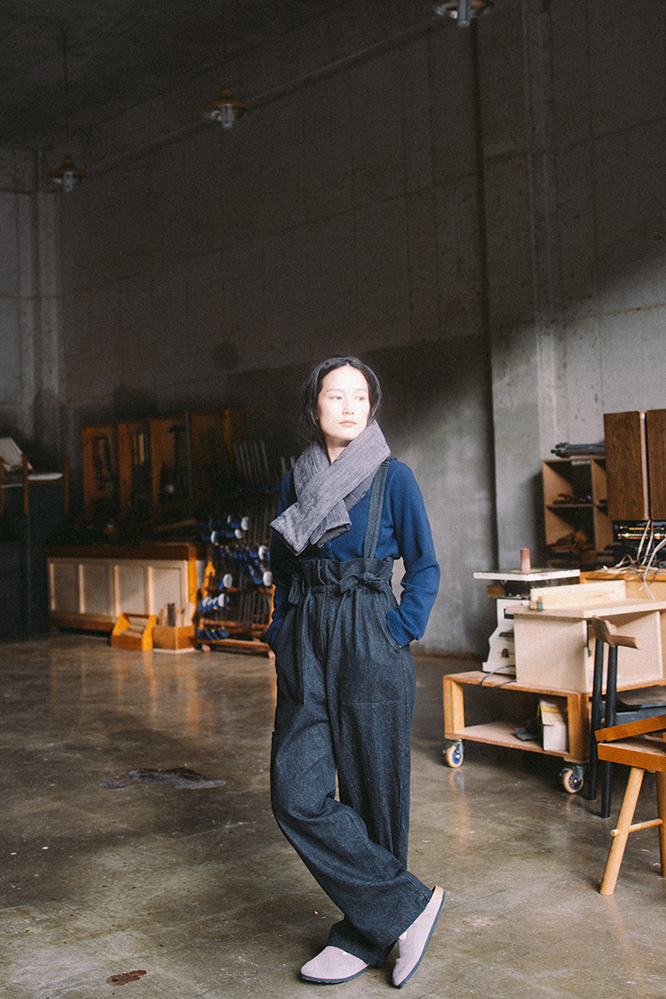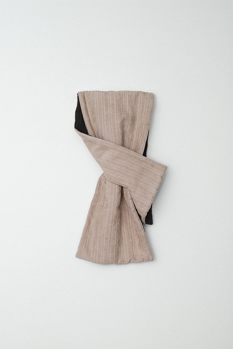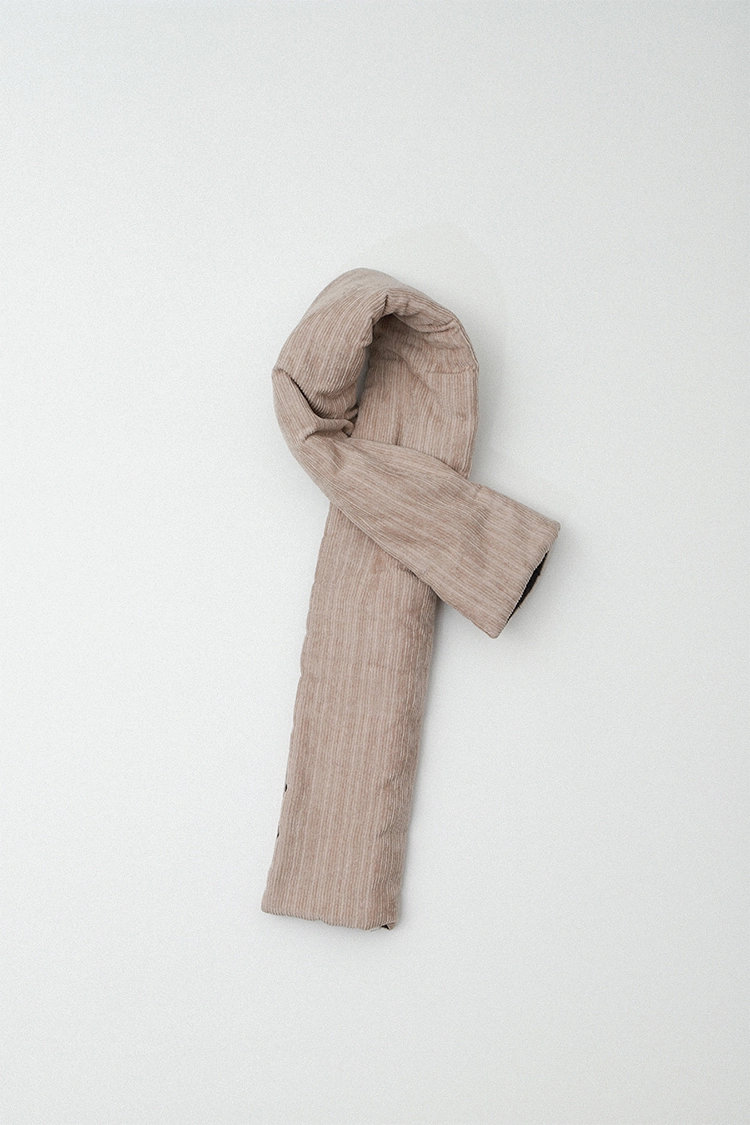 머플러를 가로로 접어서 착용하게 되면 목 높이에 맞게 편안하게 착용할 수 있습니다. 이 구조는 양면 모두 가능하게 만들었습니다.