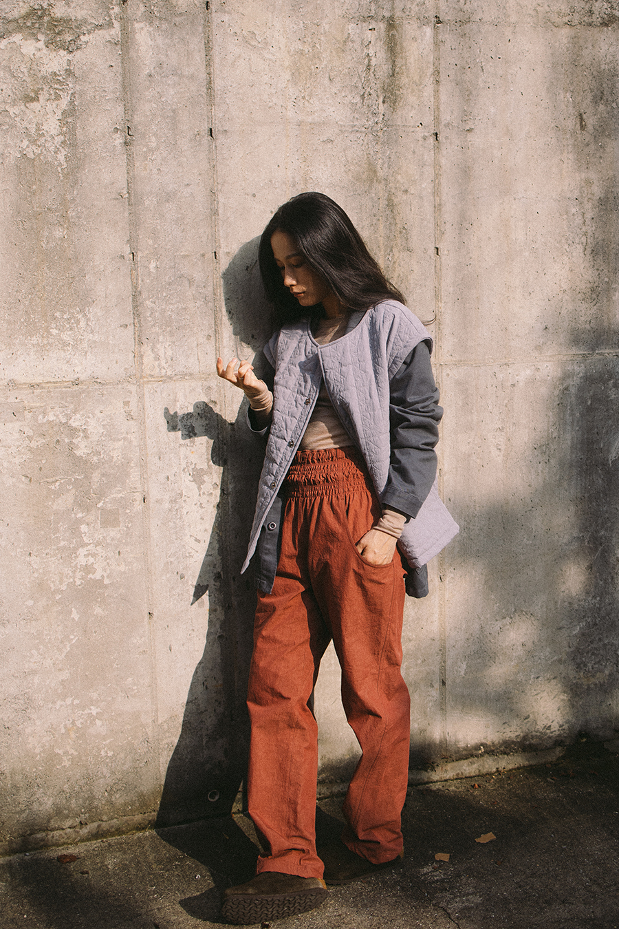 기장의 경우 평균 키 기준 살짝 긴 길이로 제작했습니다. 스토퍼로 고정할 경우 발목 부분에서 딱 잡혀 키에 상관없이 편하게 착용할 수 있습니다.