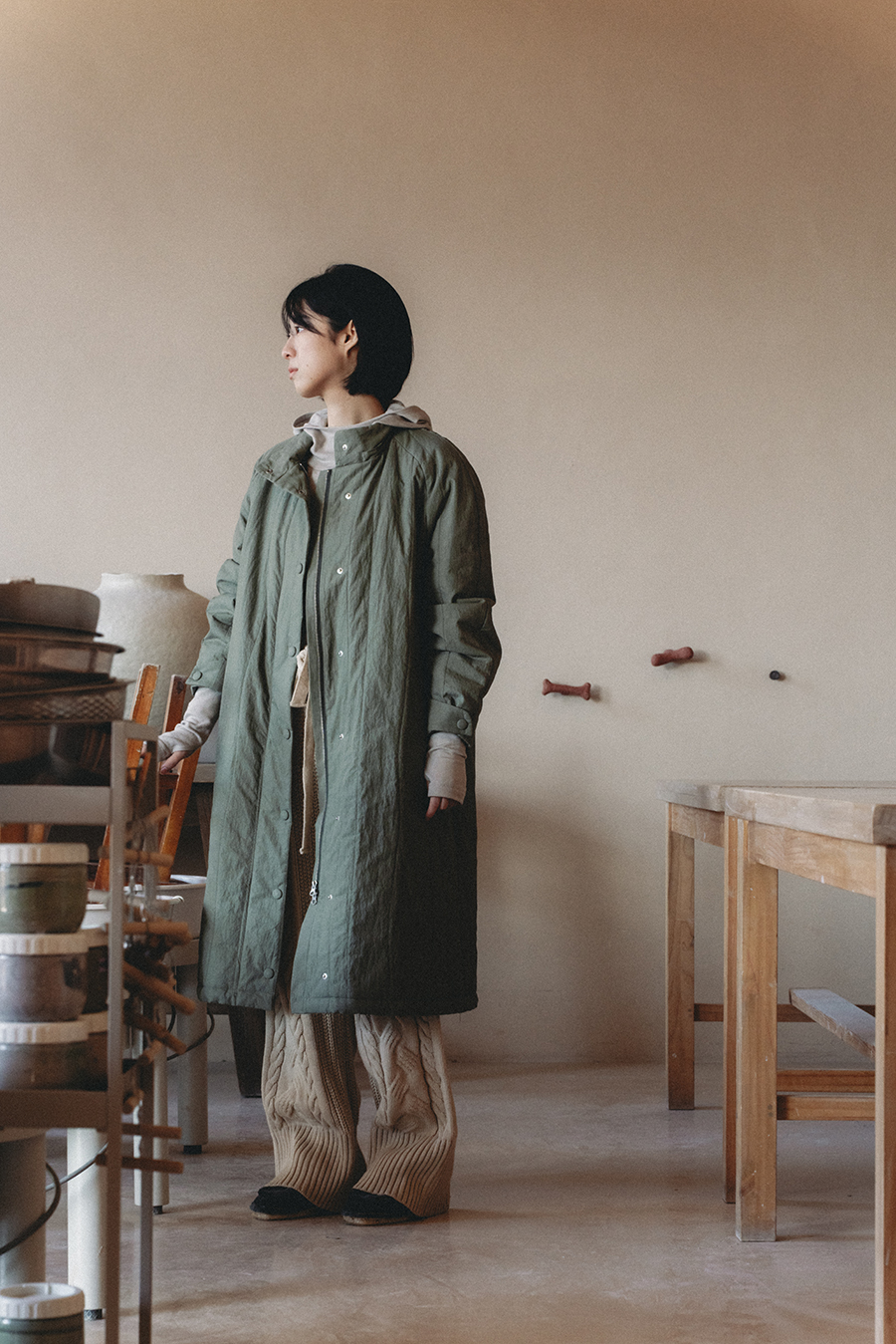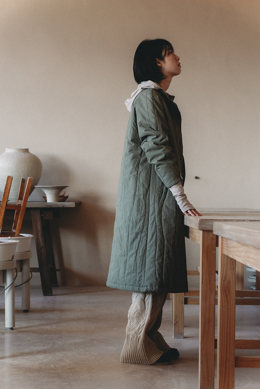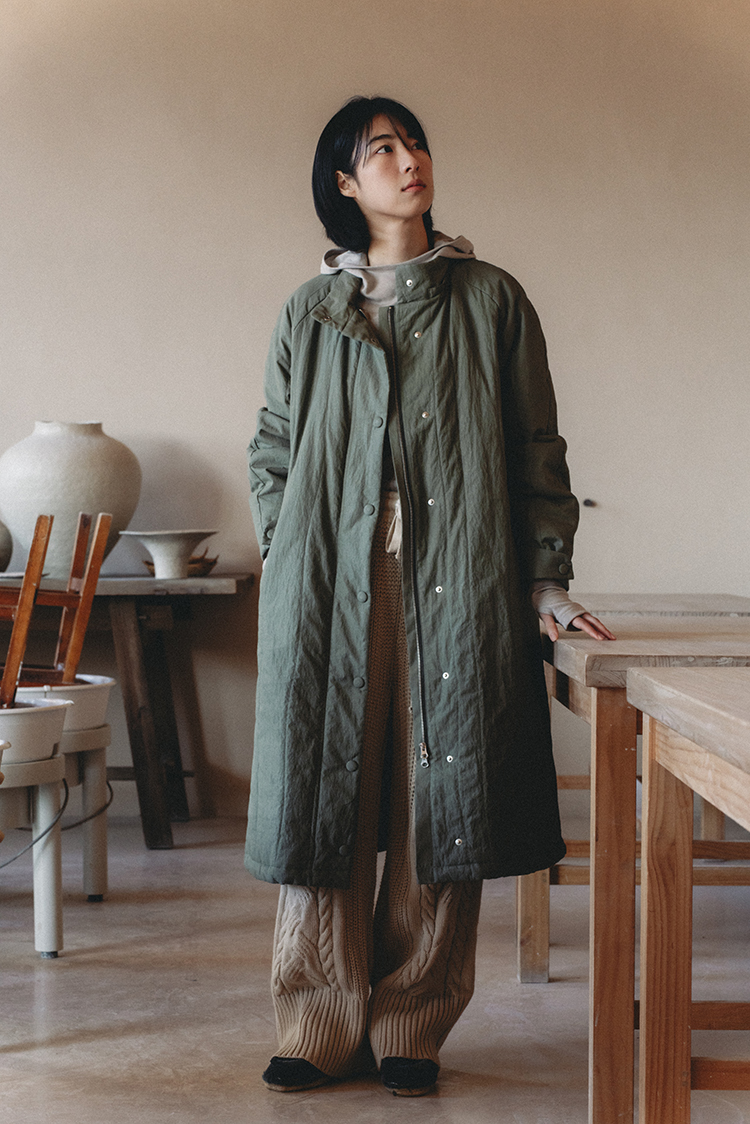 지난 팝업 전시 때 공개와 예약 주문 이후 드디어 완성하여 온라인으로도 선보이는 핸드 퀼팅 코트입니다 :)