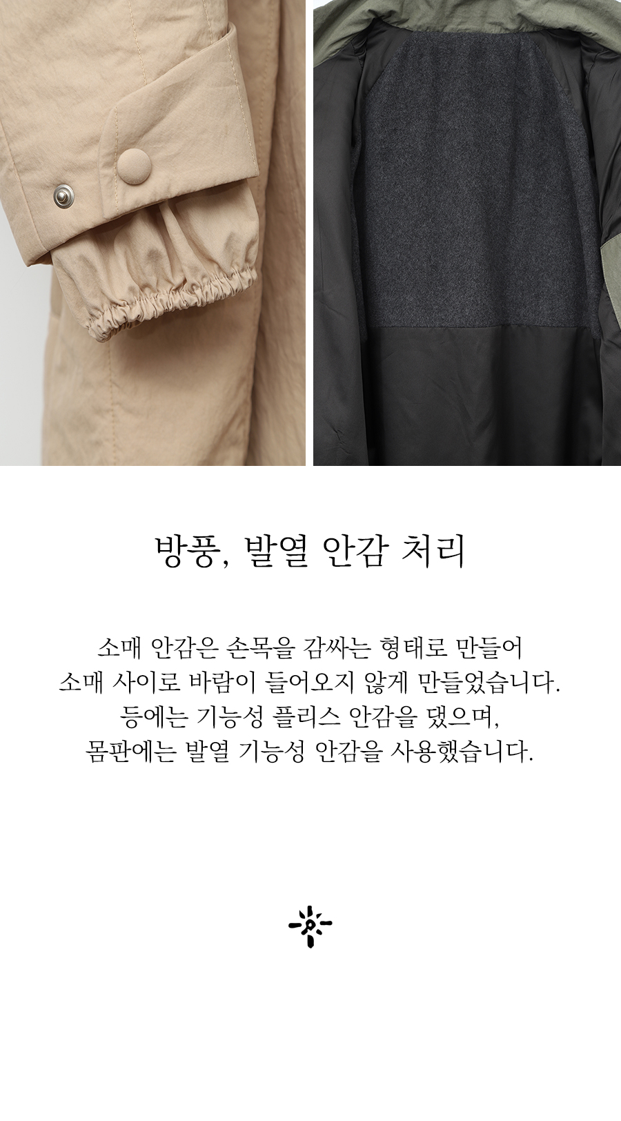 안감2 : 폴리에스터 100%, 투습성, 보온 기능성