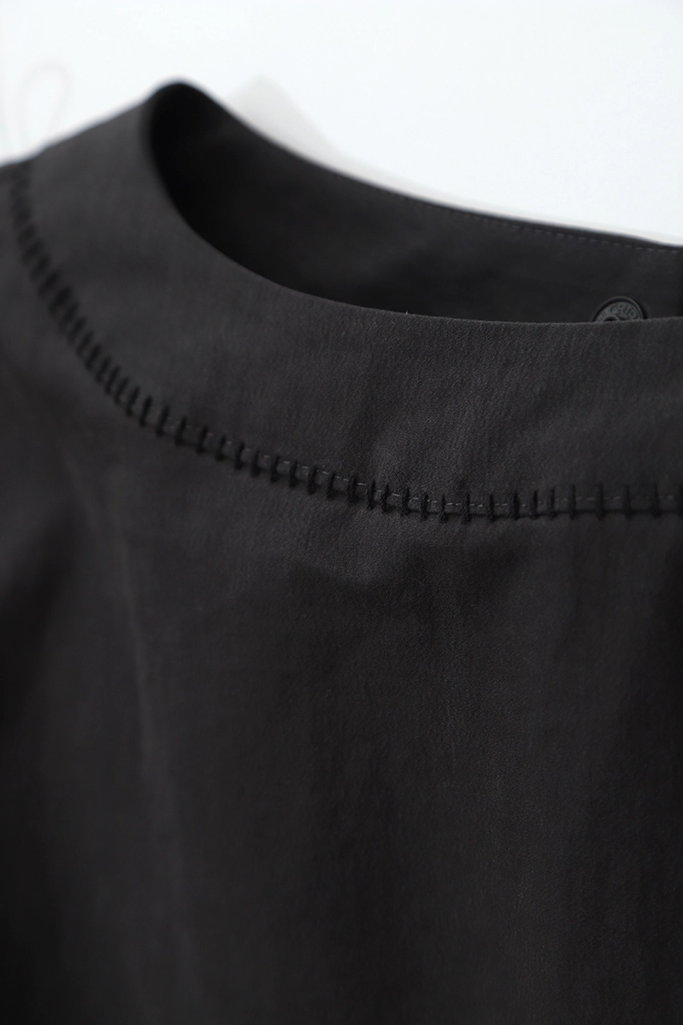 블랙 컬러의 경우 일부 제품 사진에 새제품이 아닌 수목의 디자이너가 가지고 있던 장시간 착용을 한 제품을 사용했습니다. (제품 디테일 사진과 커피 드립하는 씬의 사진이 새제품의 모습입니다.) 사진처럼 빈티지한 느낌을 빠르게 만들고 싶으신 분들은 제품을 의류 건조기에 자주 돌리시면 되는데, 이 때 넥과 밑단의 자수 스티치 손상에 주의해주세요. (금속 부자재가 사용된 의류와 함께 건조기 사용에 유의해 주세요.)