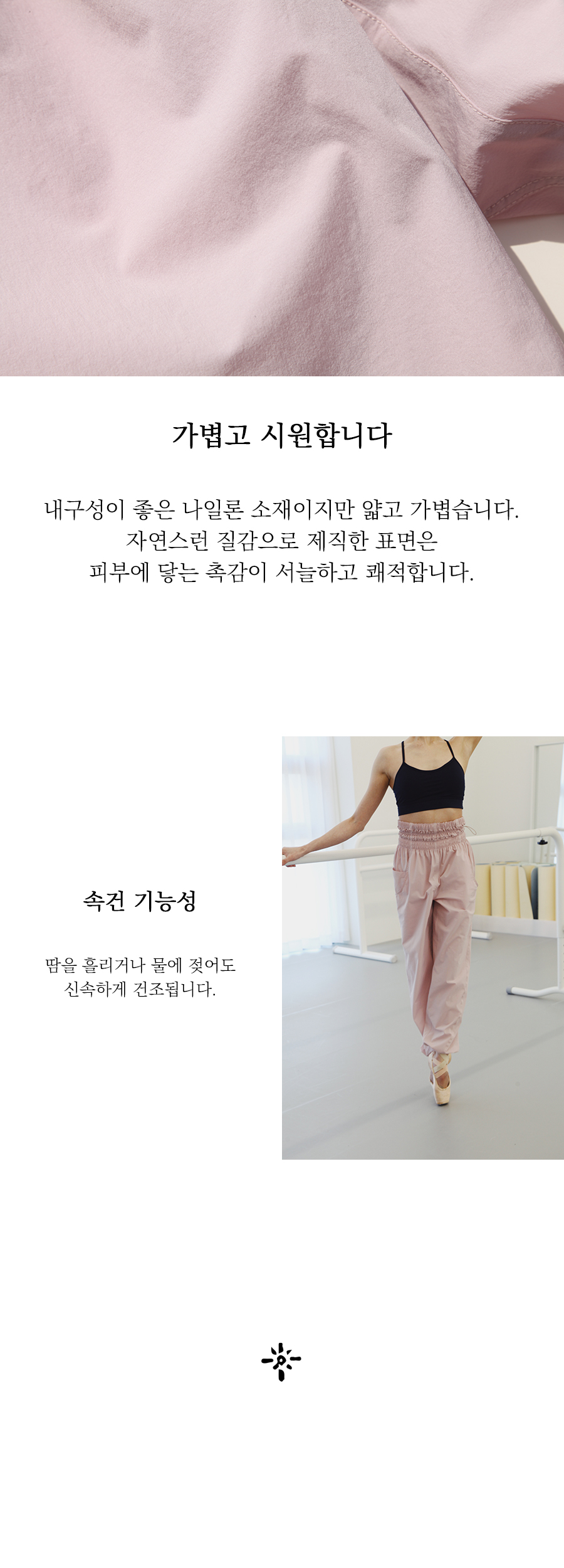 밑단 스토퍼를 조일 경우 발목 부분에서 기장이 딱 잡혀 키에 상관없이 편하게 착용할 수 있습니다.