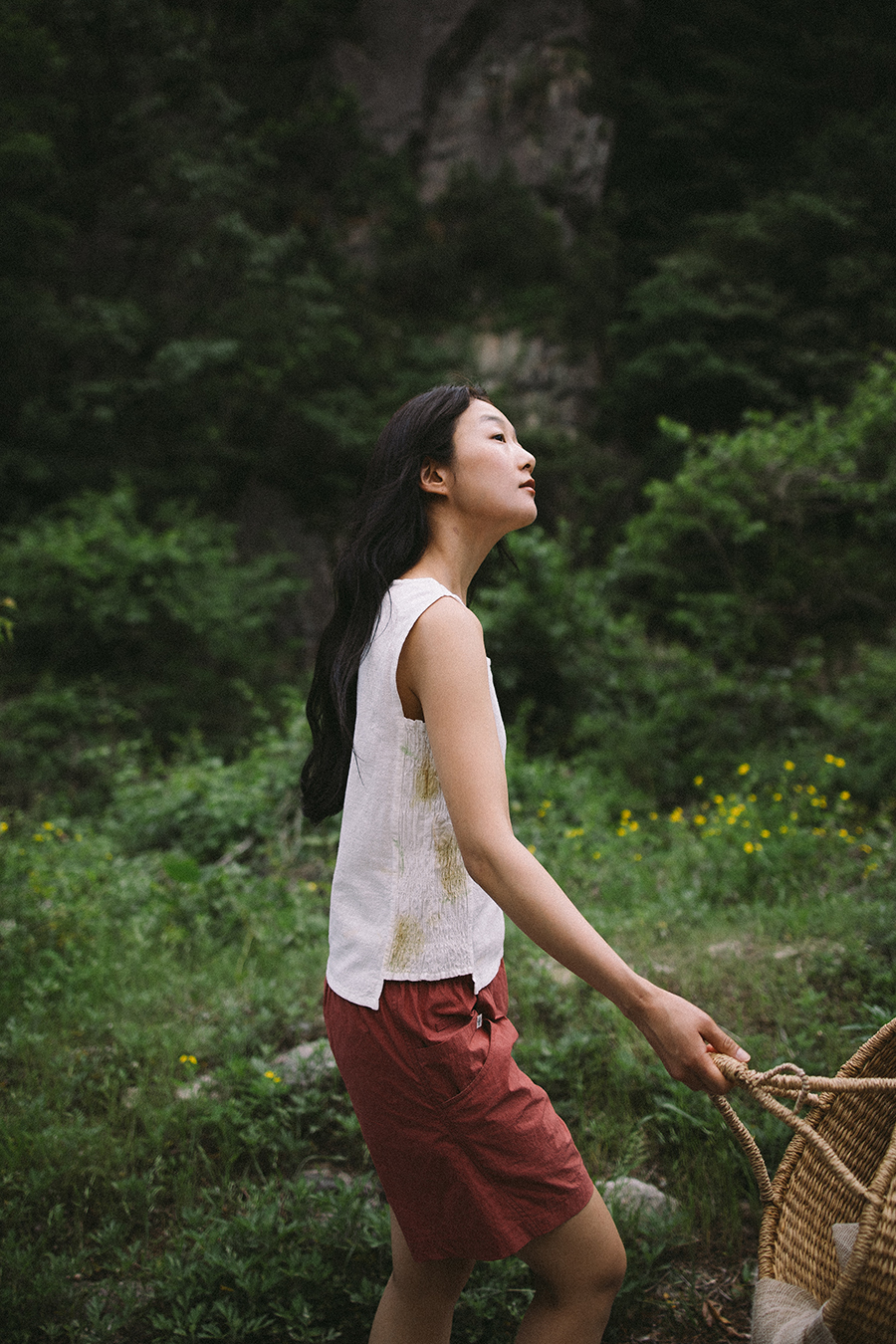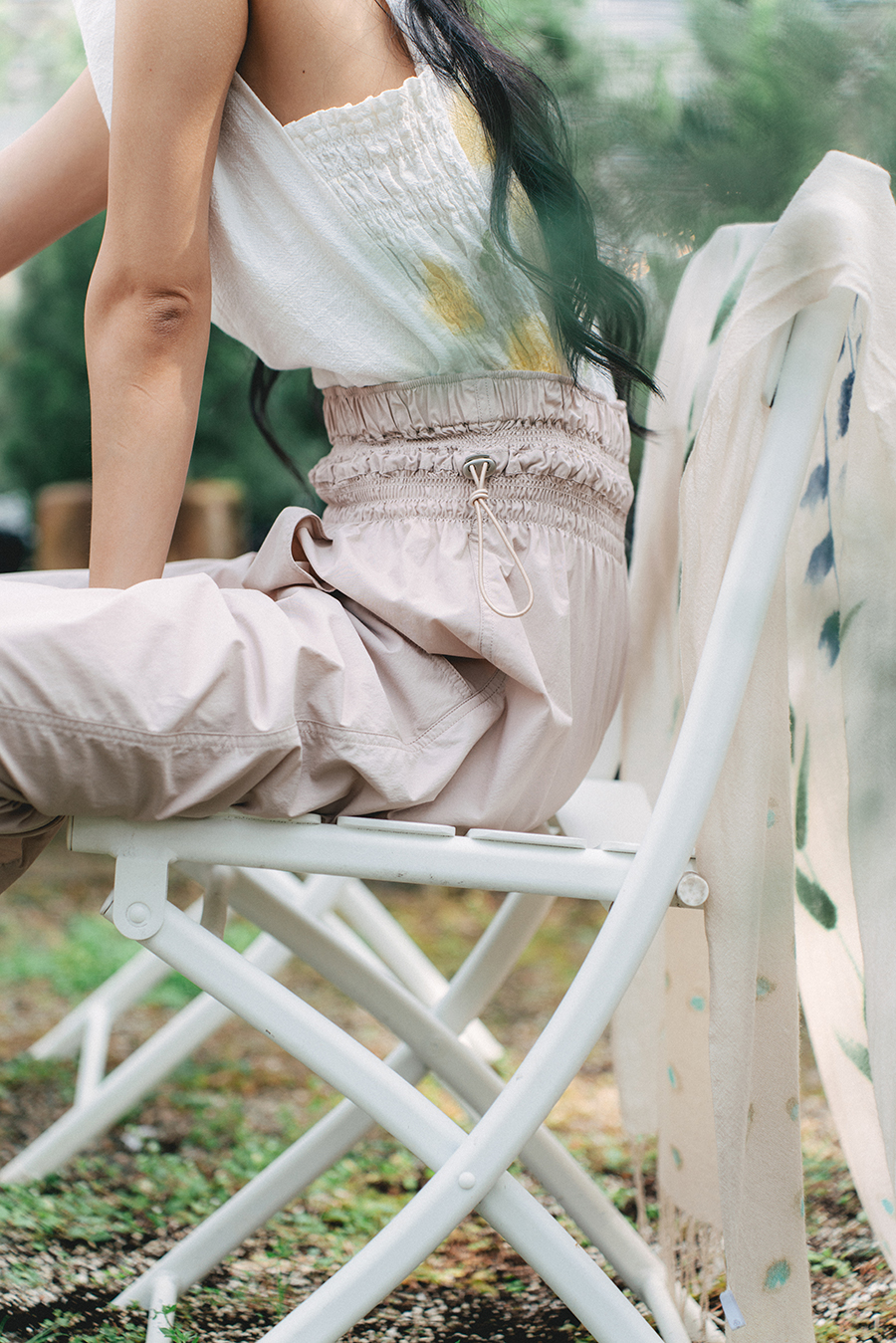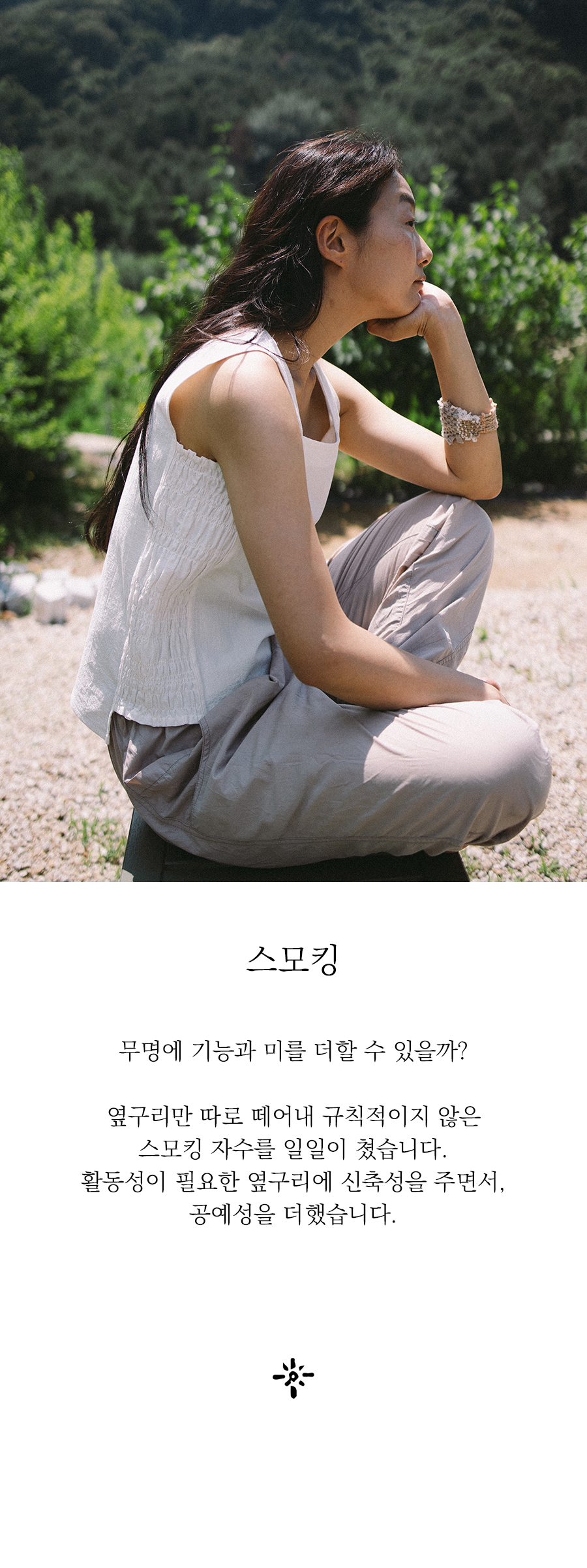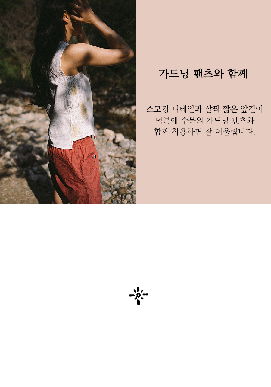 무명 소재는 염색이 잘 받아서, 착용하시다가 옆 스모킹이나 밑단 등에 가볍게 꽃염색을 해보셔도 좋습니다. 간단히 식물 염색을 할 수 있는 방법을 안내해드리니 즐겁게 착용해보세요 :)