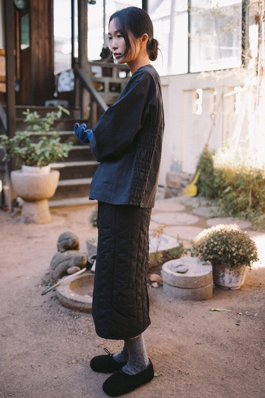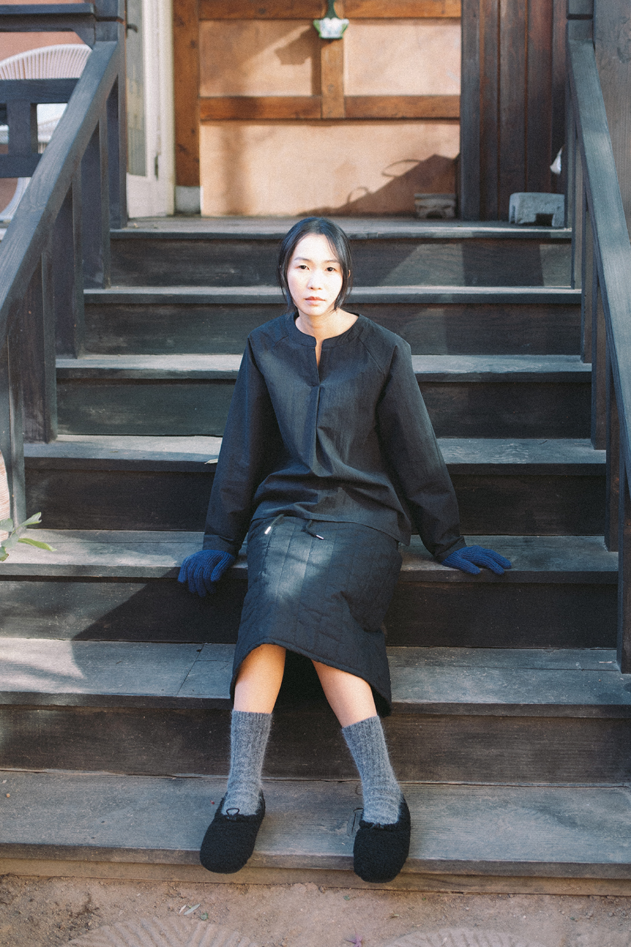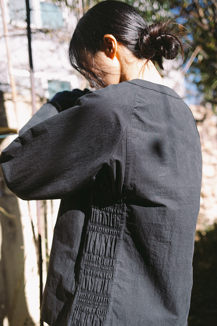 최초 이 표백한 면실크 원단을 블랙으로 염색하여 함께 출시하려고 했으나, 작업에 2-3개월이 걸리는 잿물 표백 원단의 희소성 때문에 블랙 컬러는 다른 소재로 만들게 되었습니다.